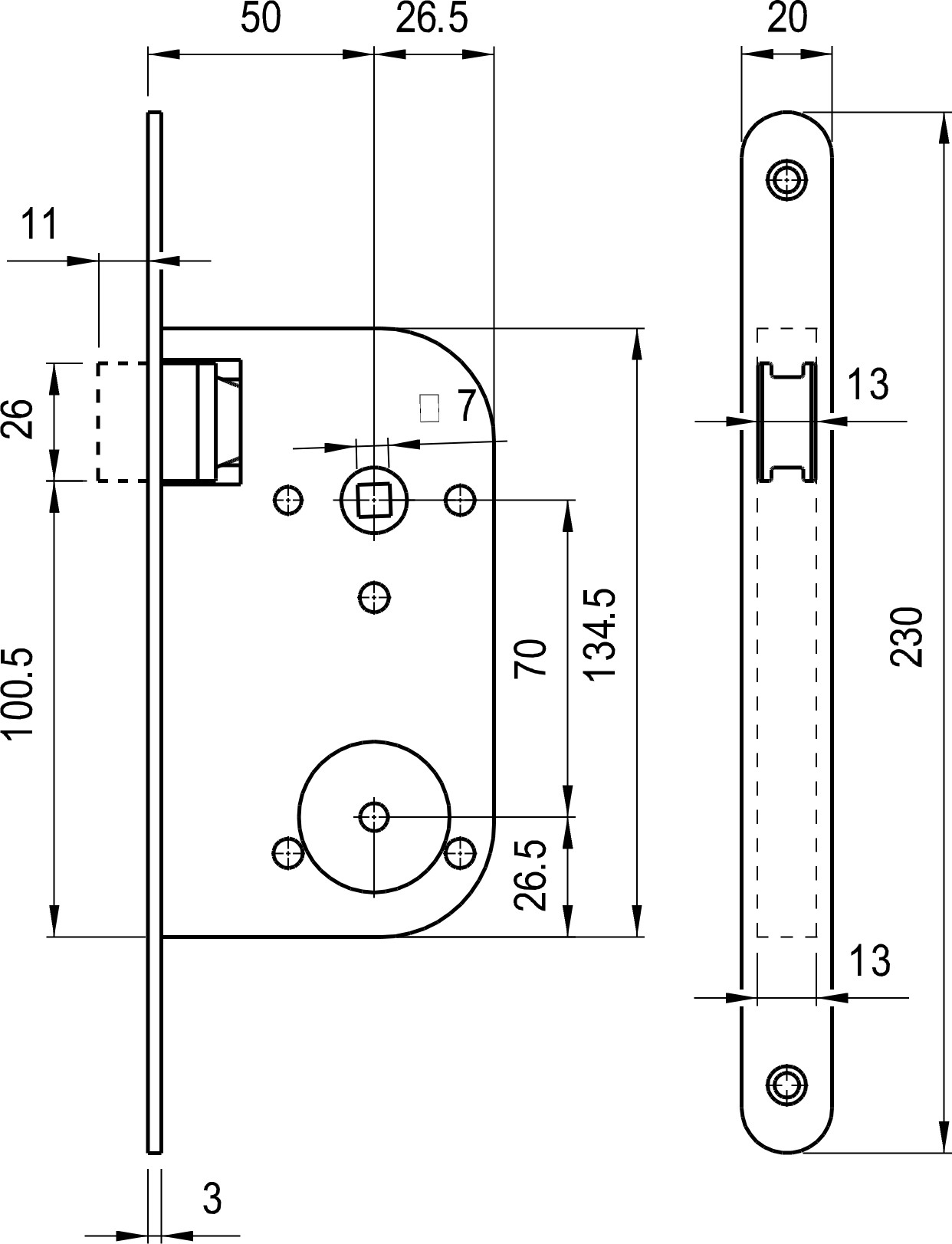 | Saillie du pêne demi tour (mm) | 11 |