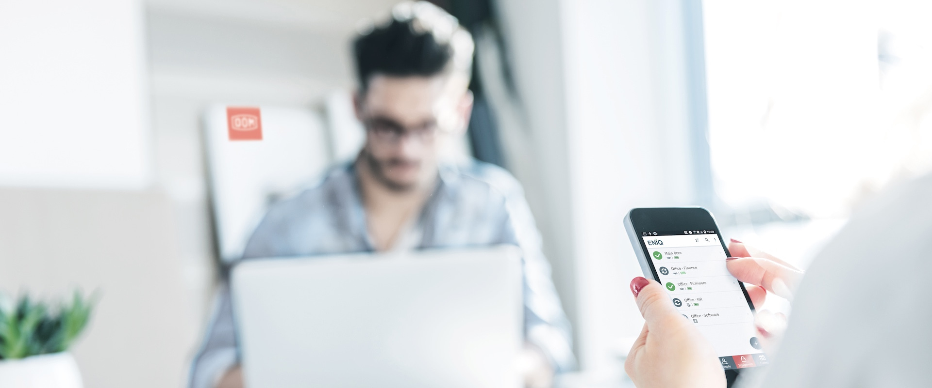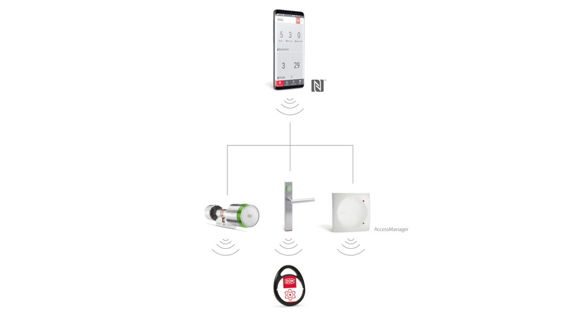 Dzięki aplikacji ENiQ można uzyskać dostęp i programować każde indywidualne urządzenie ENiQ, niezależnie od tego, czy jest podłączone do sieci, czy bezpośrednio poprzez lokalną komunikację bezprzewodową za pośrednictwem NFC. Zawsze tworzy kopię zapasową Twojego systemu bezpieczeństwa i możesz płynnie go zmieniać.