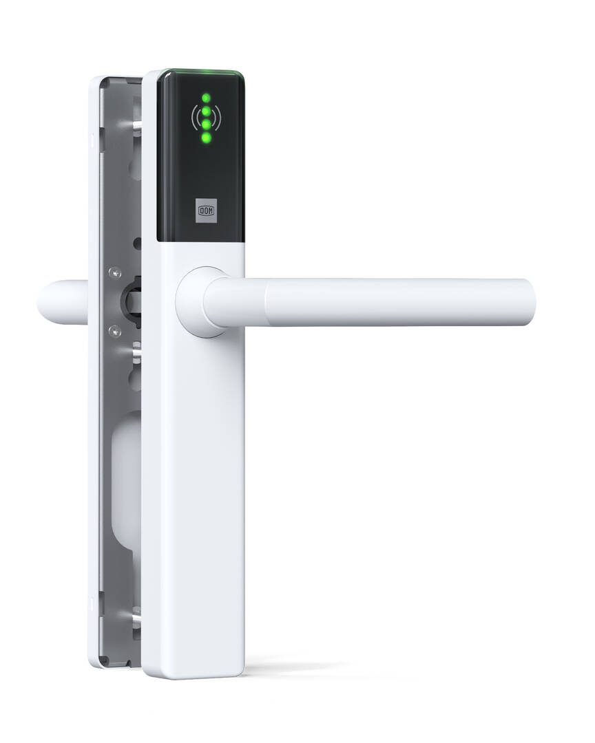 For systems managed by ENiQ App, you can use the app. Open the device name and click on the round icon (Status icon). If your smartphone is connected to the internet and if the icon is green, it means your device has the latest firmware version. Should the icon is red, please tap on the icon and the devices will be updated to the latest firmware when you are in range with the devices. For all other systems, download the DOM Service app to update your devices. This app shows you all devices in BLE range and shows the status of each device's firmware. You can update them by tapping on the device list and show the master/programming card to the reading field of the device. If your device does not show on the list, use NFC and hold your smartphone NFC antenna in front of the device's reading field. The device will show automatically.